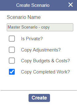 - Select copy budgets & costs to copy any budgets and costs from the base scenario into the new scenario.
