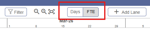 Change the roadmap settings to show your roadmap in either days or FTE.